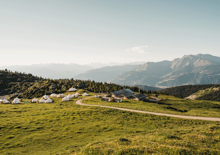 TCS is back this summer with the pop-up glamping village above Laax. From the end of June to mid-September, the cozy and comfortably furnished cotton tents are pitched on Alp Nagens, 2,000 meters above sea level. The location captivates by its situation close to the reservoir and the breathtaking view of the Grisons mountain panorama.